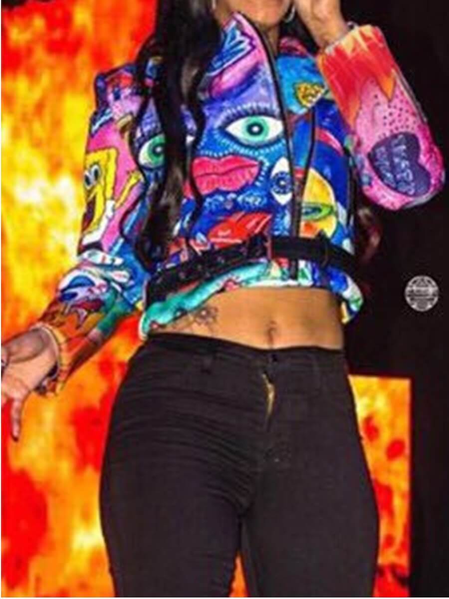 Turndown Printed Cloth Material Chic Jacket