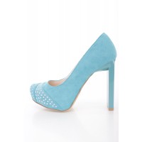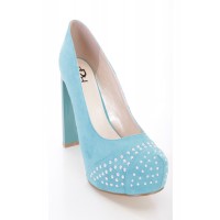 Double Size Suede Trede Heels Metal Stone Accent cluster front textile look