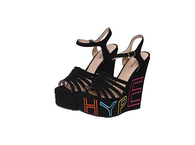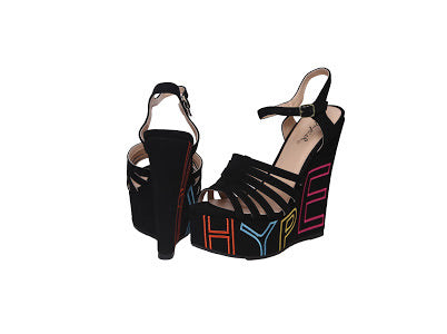 Hype Wedge High Heel Black Embroider wording open toe wedge